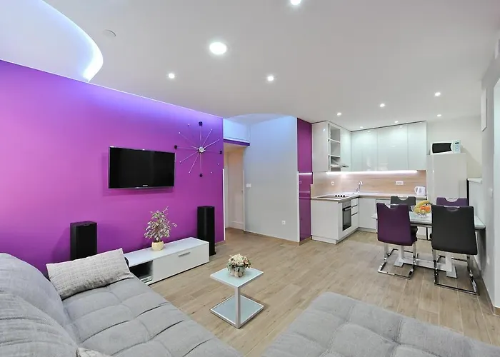 El Apartment Purple Summer City Zadar, situado a tan solo 1 km de Jadran Beach, incluye un balcón y una zona de estar. Este apartamento ofrece un aparcamiento público cerca.